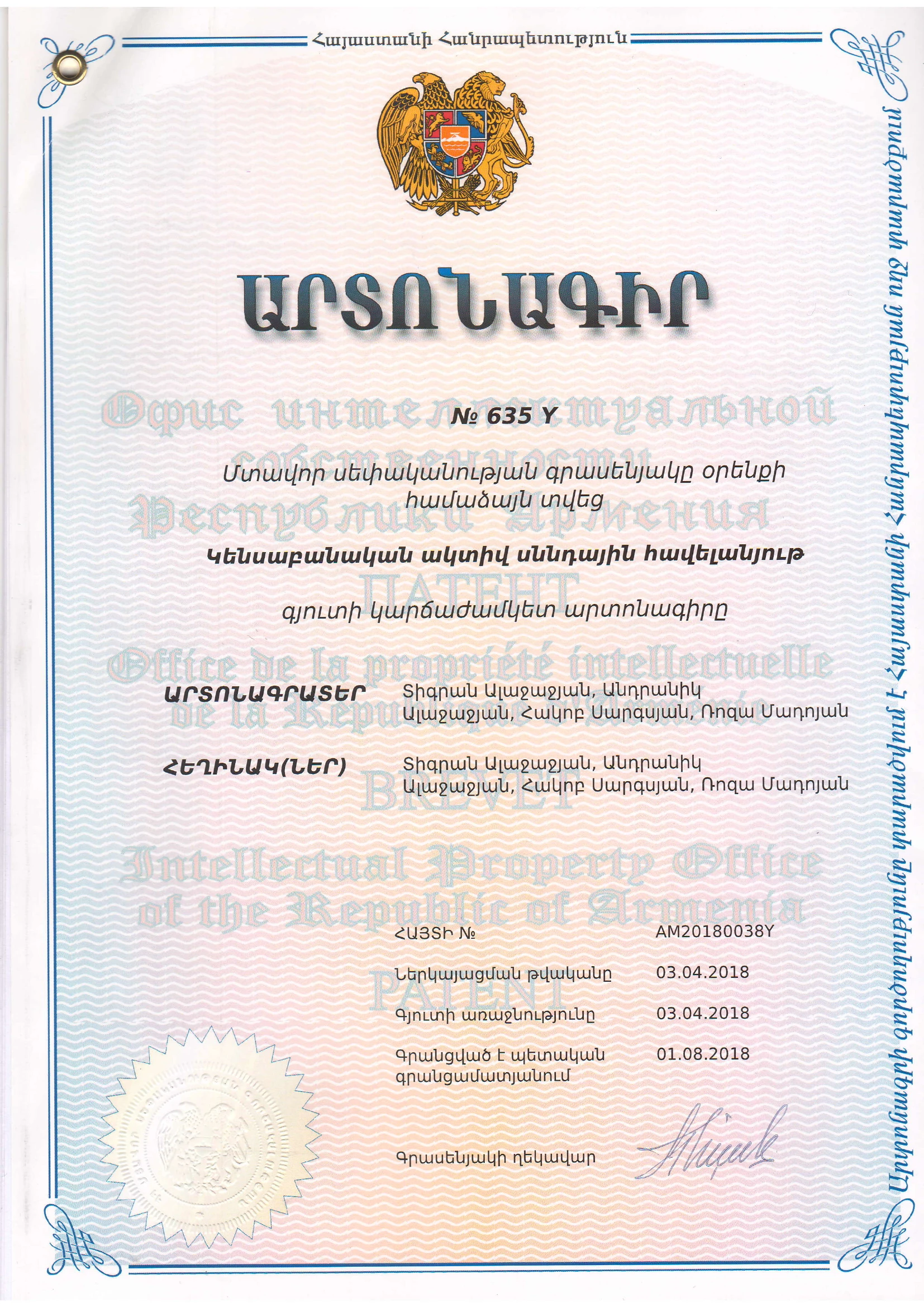 Արտադրվում է պատենտավորված տեխնոլոգիայով միայն Հայաստանի Հանրապետությունում: